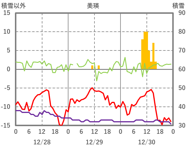 | 日 | 時 | 気温 | 降水 | 風向/風速 | 日照 | 積雪 | 降雪 |