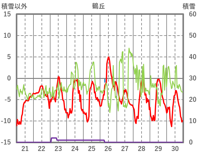 | 日 | 時 | 気温 | 降水 | 風向/風速 | 日照 | 積雪 | 降雪 |