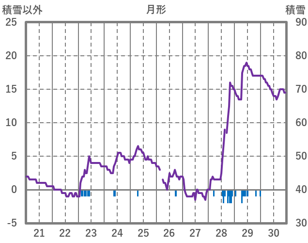 | 日 | 時 | 気温 | 降水 | 風向/風速 | 日照 | 積雪 | 降雪 |