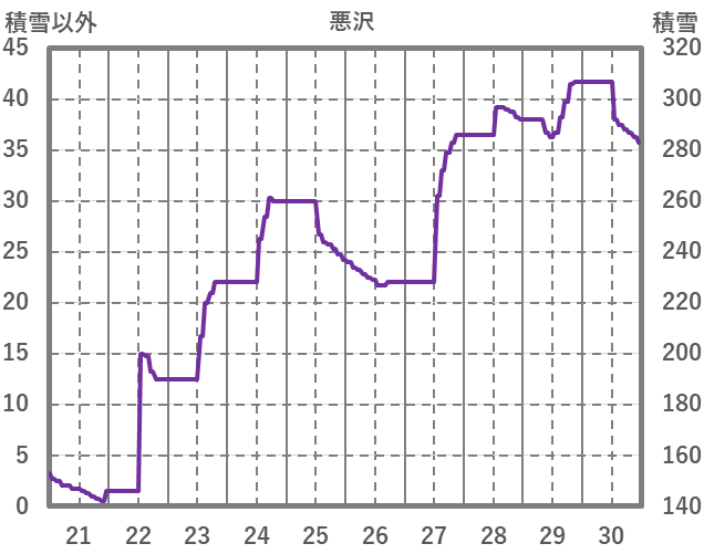 | 日 | 時 | 気温 | 降水 | 風向/風速 | 日照 | 積雪 | 降雪 |