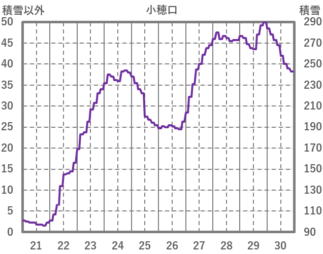 | 日 | 時 | 気温 | 降水 | 風向/風速 | 日照 | 積雪 | 降雪 |