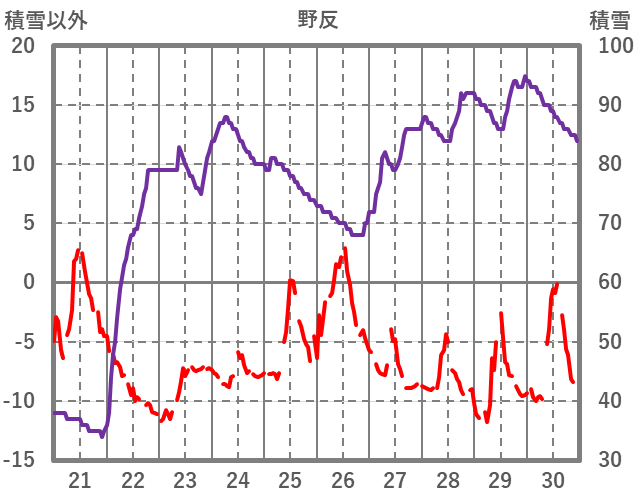 | 日 | 時 | 気温 | 降水 | 風向/風速 | 日照 | 積雪 | 降雪 |