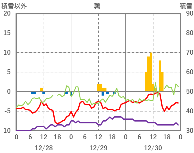| 日 | 時 | 気温 | 降水 | 風向/風速 | 日照 | 積雪 | 降雪 |