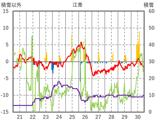 | 日 | 時 | 気温 | 降水 | 風向/風速 | 日照 | 積雪 | 降雪 |