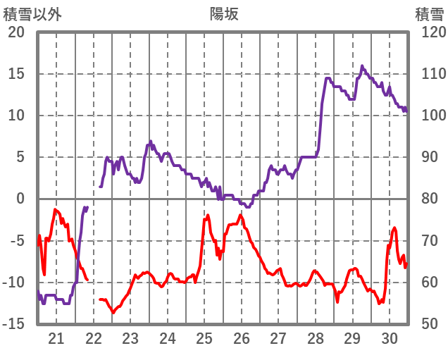 | 日 | 時 | 気温 | 降水 | 風向/風速 | 日照 | 積雪 | 降雪 |