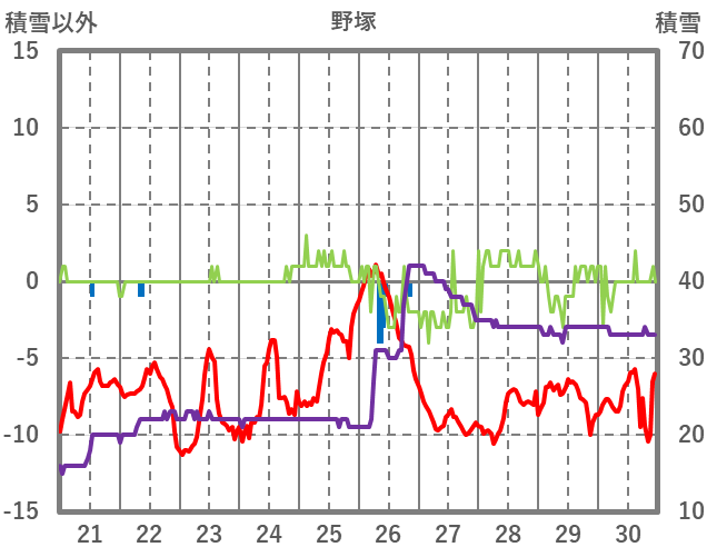 | 日 | 時 | 気温 | 降水 | 風向/風速 | 日照 | 積雪 | 降雪 |