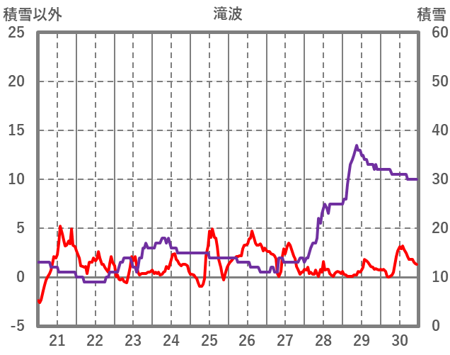 | 日 | 時 | 気温 | 降水 | 風向/風速 | 日照 | 積雪 | 降雪 |