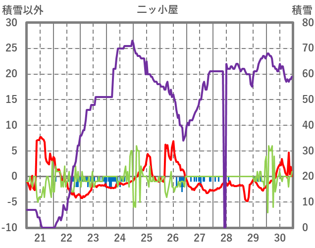 | 日 | 時 | 気温 | 降水 | 風向/風速 | 日照 | 積雪 | 降雪 |