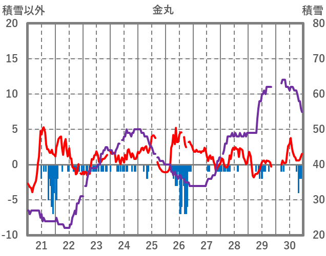 | 日 | 時 | 気温 | 降水 | 風向/風速 | 日照 | 積雪 | 降雪 |