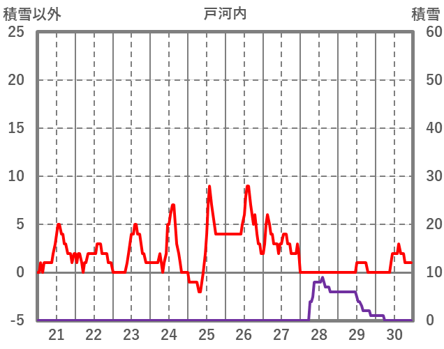 | 日 | 時 | 気温 | 降水 | 風向/風速 | 日照 | 積雪 | 降雪 |
