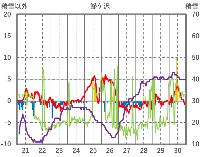 | 日 | 時 | 気温 | 降水 | 風向/風速 | 日照 | 積雪 | 降雪 |