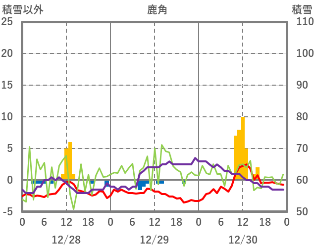 | 日 | 時 | 気温 | 降水 | 風向/風速 | 日照 | 積雪 | 降雪 |
