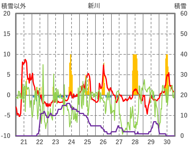 | 日 | 時 | 気温 | 降水 | 風向/風速 | 日照 | 積雪 | 降雪 |
