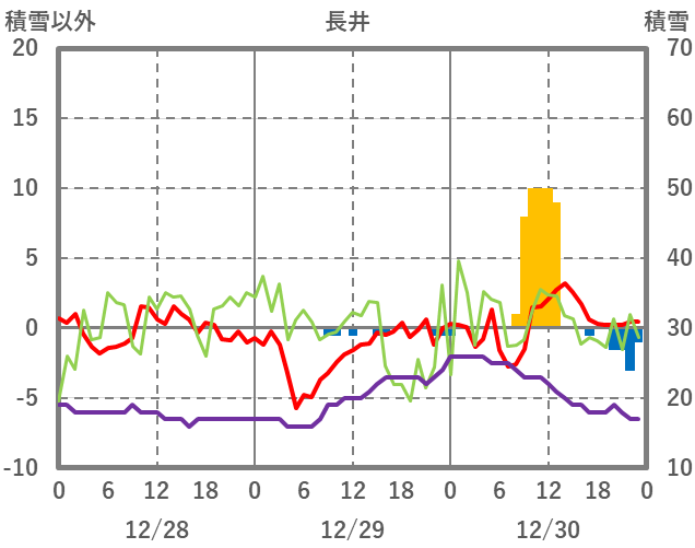 | 日 | 時 | 気温 | 降水 | 風向/風速 | 日照 | 積雪 | 降雪 |