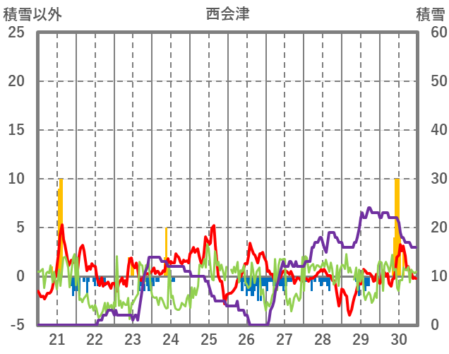 | 日 | 時 | 気温 | 降水 | 風向/風速 | 日照 | 積雪 | 降雪 |
