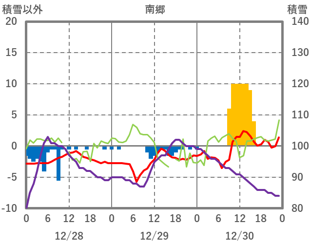 | 日 | 時 | 気温 | 降水 | 風向/風速 | 日照 | 積雪 | 降雪 |