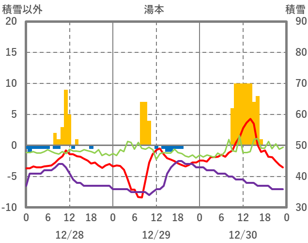 | 日 | 時 | 気温 | 降水 | 風向/風速 | 日照 | 積雪 | 降雪 |