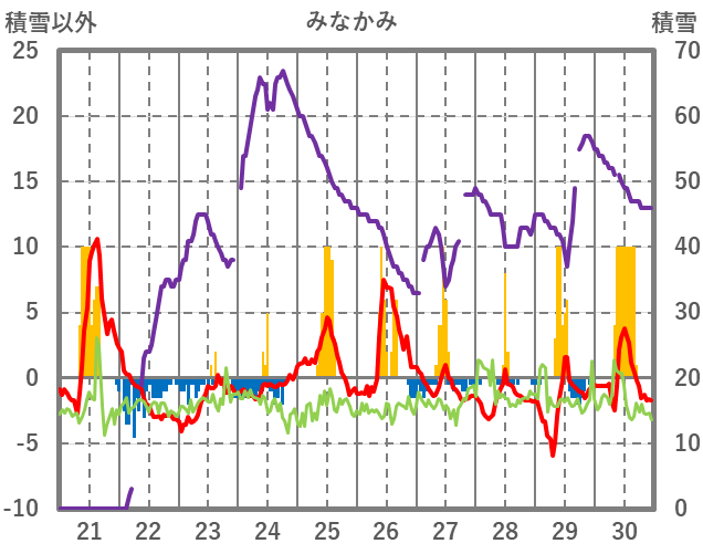 | 日 | 時 | 気温 | 降水 | 風向/風速 | 日照 | 積雪 | 降雪 |