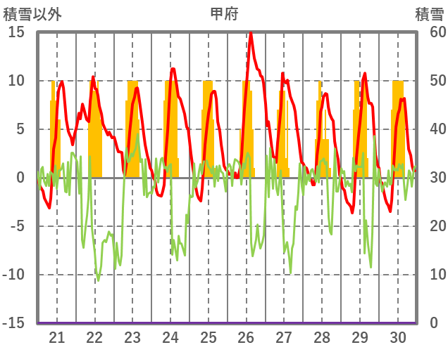 | 日 | 時 | 気温 | 降水 | 風向/風速 | 日照 | 積雪 | 降雪 |
