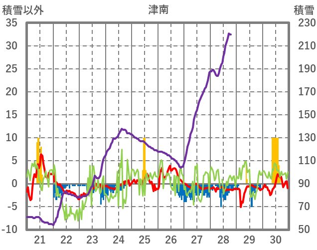 | 日 | 時 | 気温 | 降水 | 風向/風速 | 日照 | 積雪 | 降雪 |
