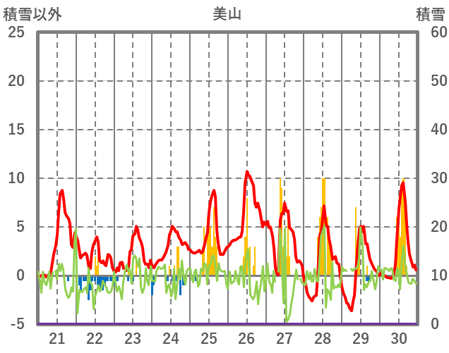| 日 | 時 | 気温 | 降水 | 風向/風速 | 日照 | 積雪 | 降雪 |