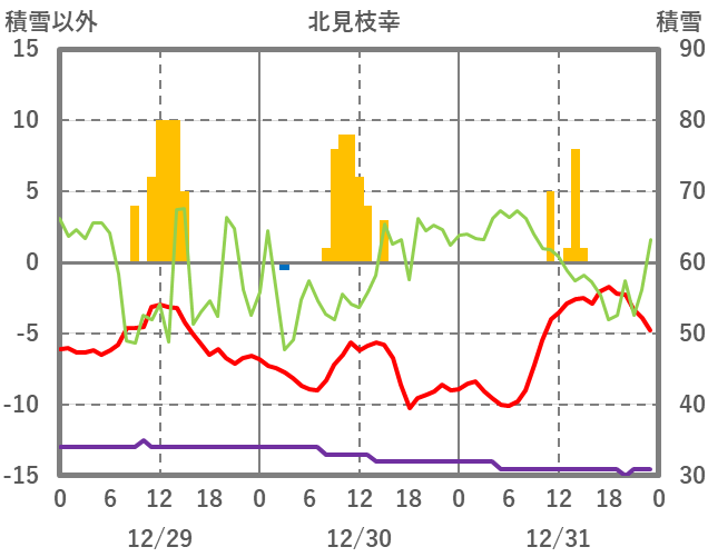 | 日 | 時 | 気温 | 降水 | 風向/風速 | 日照 | 積雪 | 降雪 |
