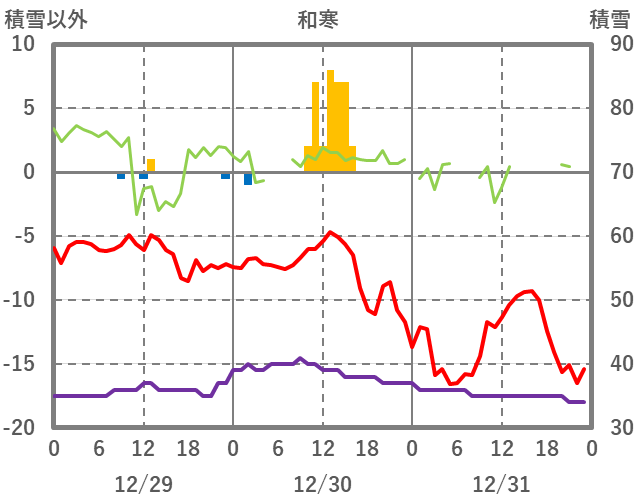 | 日 | 時 | 気温 | 降水 | 風向/風速 | 日照 | 積雪 | 降雪 |