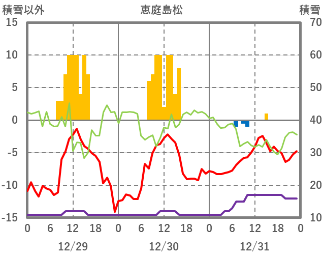 | 日 | 時 | 気温 | 降水 | 風向/風速 | 日照 | 積雪 | 降雪 |