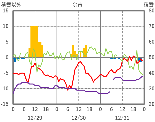 | 日 | 時 | 気温 | 降水 | 風向/風速 | 日照 | 積雪 | 降雪 |