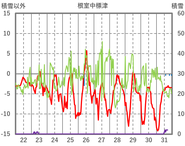 | 日 | 時 | 気温 | 降水 | 風向/風速 | 日照 | 積雪 | 降雪 |