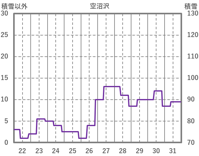 | 日 | 時 | 気温 | 降水 | 風向/風速 | 日照 | 積雪 | 降雪 |