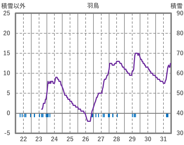 | 日 | 時 | 気温 | 降水 | 風向/風速 | 日照 | 積雪 | 降雪 |