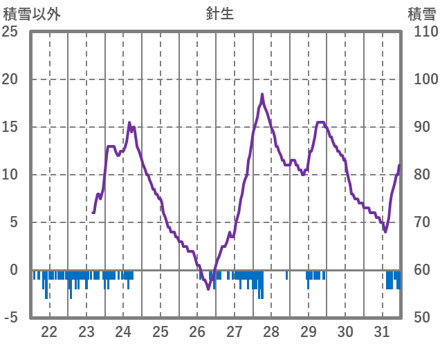 | 日 | 時 | 気温 | 降水 | 風向/風速 | 日照 | 積雪 | 降雪 |