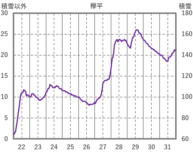 | 日 | 時 | 気温 | 降水 | 風向/風速 | 日照 | 積雪 | 降雪 |