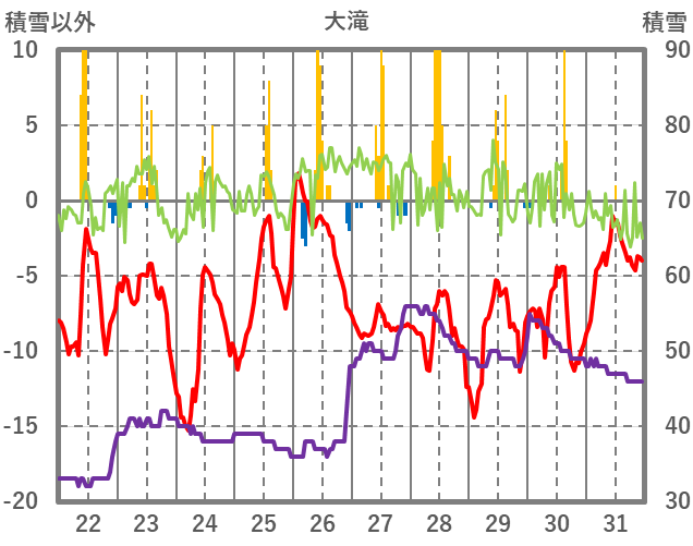 | 日 | 時 | 気温 | 降水 | 風向/風速 | 日照 | 積雪 | 降雪 |