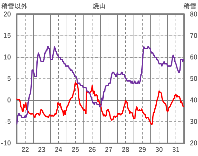 | 日 | 時 | 気温 | 降水 | 風向/風速 | 日照 | 積雪 | 降雪 |