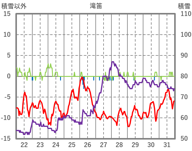 | 日 | 時 | 気温 | 降水 | 風向/風速 | 日照 | 積雪 | 降雪 |
