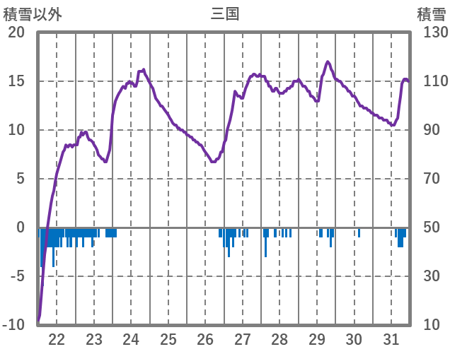 | 日 | 時 | 気温 | 降水 | 風向/風速 | 日照 | 積雪 | 降雪 |