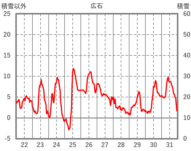 | 日 | 時 | 気温 | 降水 | 風向/風速 | 日照 | 積雪 | 降雪 |