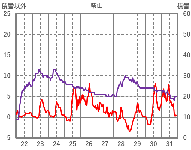 | 日 | 時 | 気温 | 降水 | 風向/風速 | 日照 | 積雪 | 降雪 |