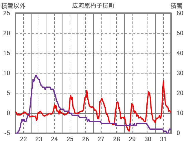 | 日 | 時 | 気温 | 降水 | 風向/風速 | 日照 | 積雪 | 降雪 |