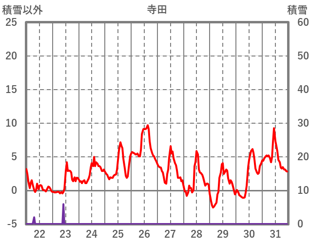 | 日 | 時 | 気温 | 降水 | 風向/風速 | 日照 | 積雪 | 降雪 |