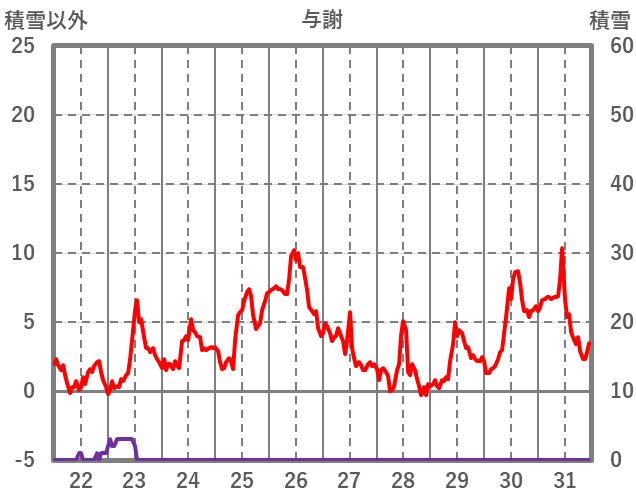 | 日 | 時 | 気温 | 降水 | 風向/風速 | 日照 | 積雪 | 降雪 |