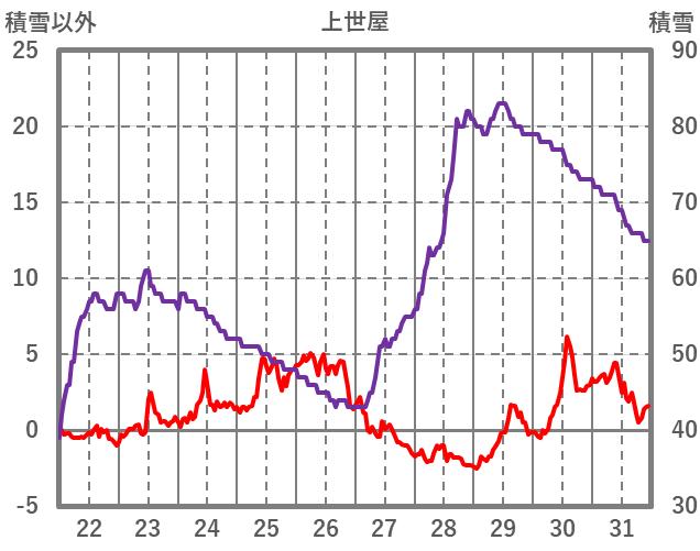 | 日 | 時 | 気温 | 降水 | 風向/風速 | 日照 | 積雪 | 降雪 |