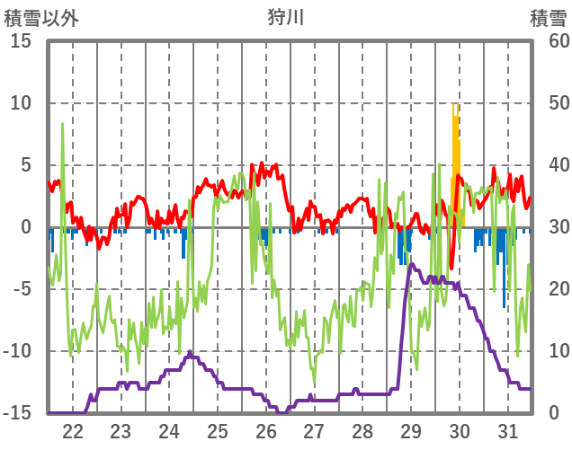| 日 | 時 | 気温 | 降水 | 風向/風速 | 日照 | 積雪 | 降雪 |