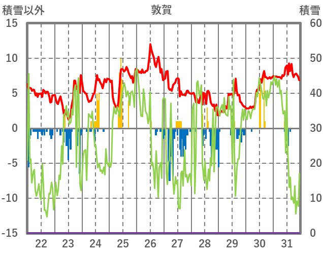 | 日 | 時 | 気温 | 降水 | 風向/風速 | 日照 | 積雪 | 降雪 |