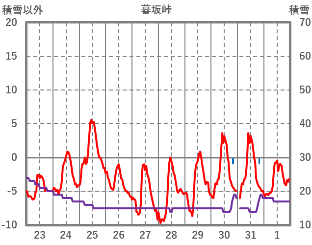 | 日 | 時 | 気温 | 降水 | 風向/風速 | 日照 | 積雪 | 降雪 |