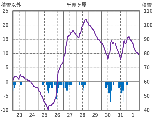 | 日 | 時 | 気温 | 降水 | 風向/風速 | 日照 | 積雪 | 降雪 |