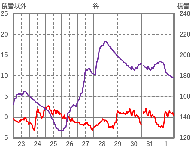 | 日 | 時 | 気温 | 降水 | 風向/風速 | 日照 | 積雪 | 降雪 |