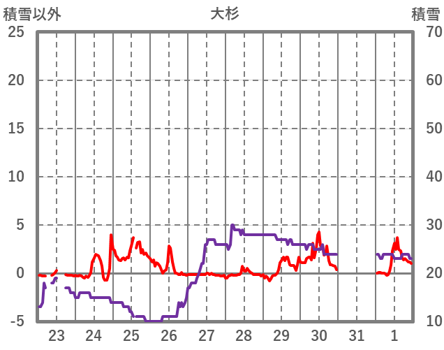 | 日 | 時 | 気温 | 降水 | 風向/風速 | 日照 | 積雪 | 降雪 |